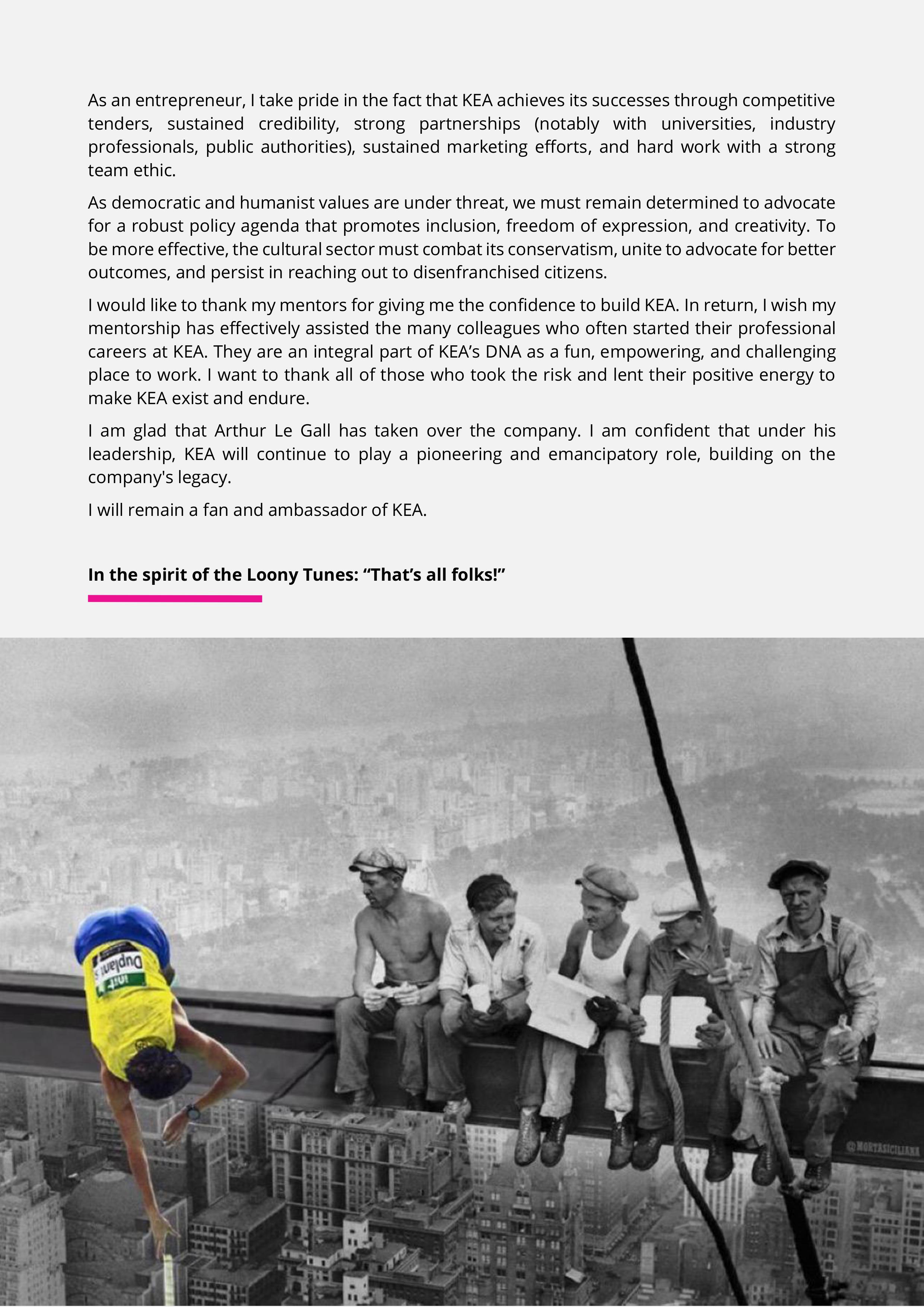 His farewell letter, shared below, reflects on the origins of KEA, its evolution, and the values that have guided our work for the last 26 years. As we turn the page, we celebrate Arthur Le Gall who took over as managing director in summer 2024. A long-time member of the KEA team, Arthur brings continuity, deep expertise, and a renewed energy to lead KEA into its next chapter. His appointment marks a natural transition – one that honours the legacy of Philippe while embracing the future with confidence and ambition.